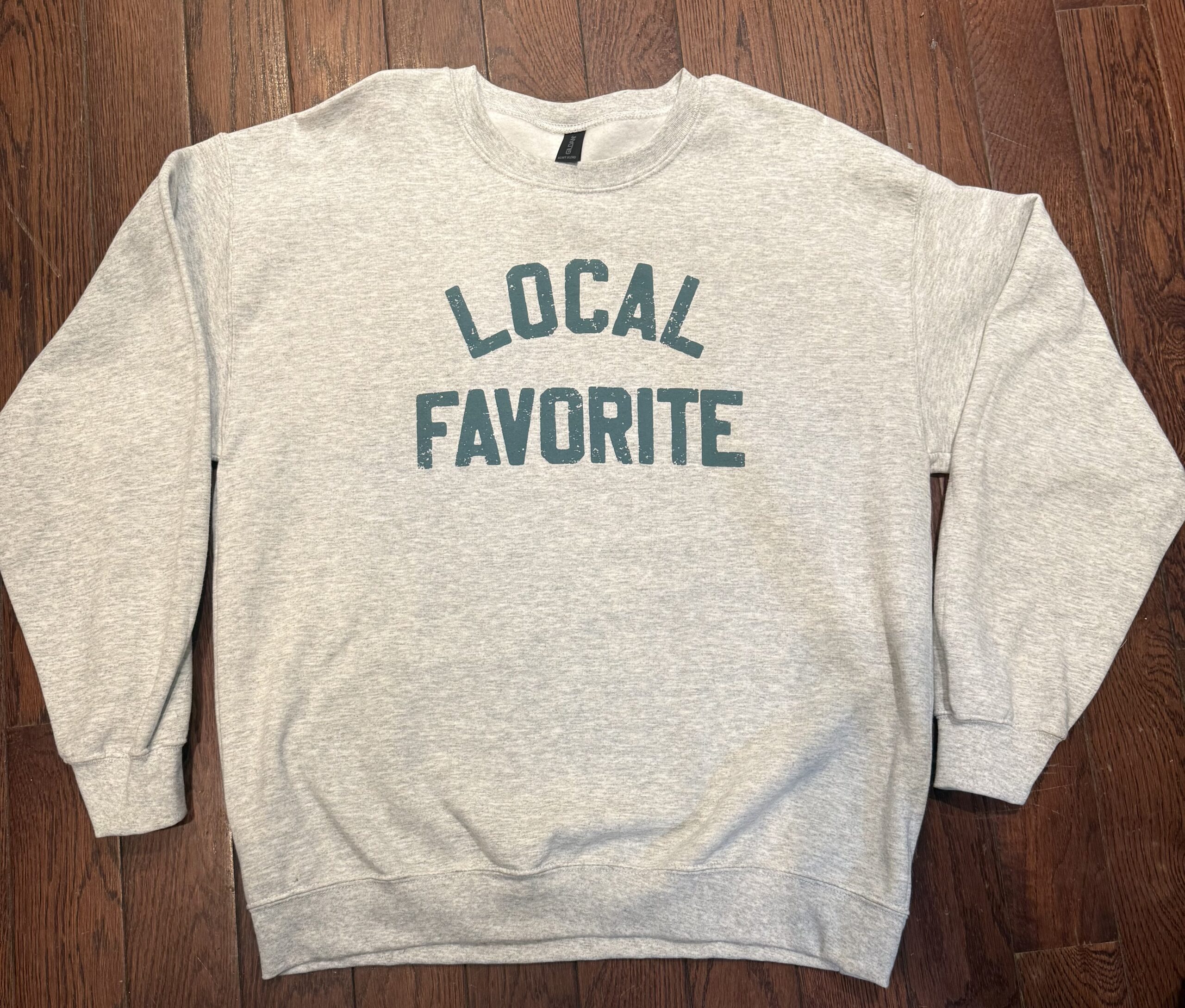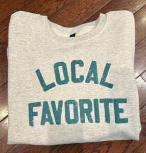 Sweatshirt with Local Favorite on Front. Available in small, medium and large.