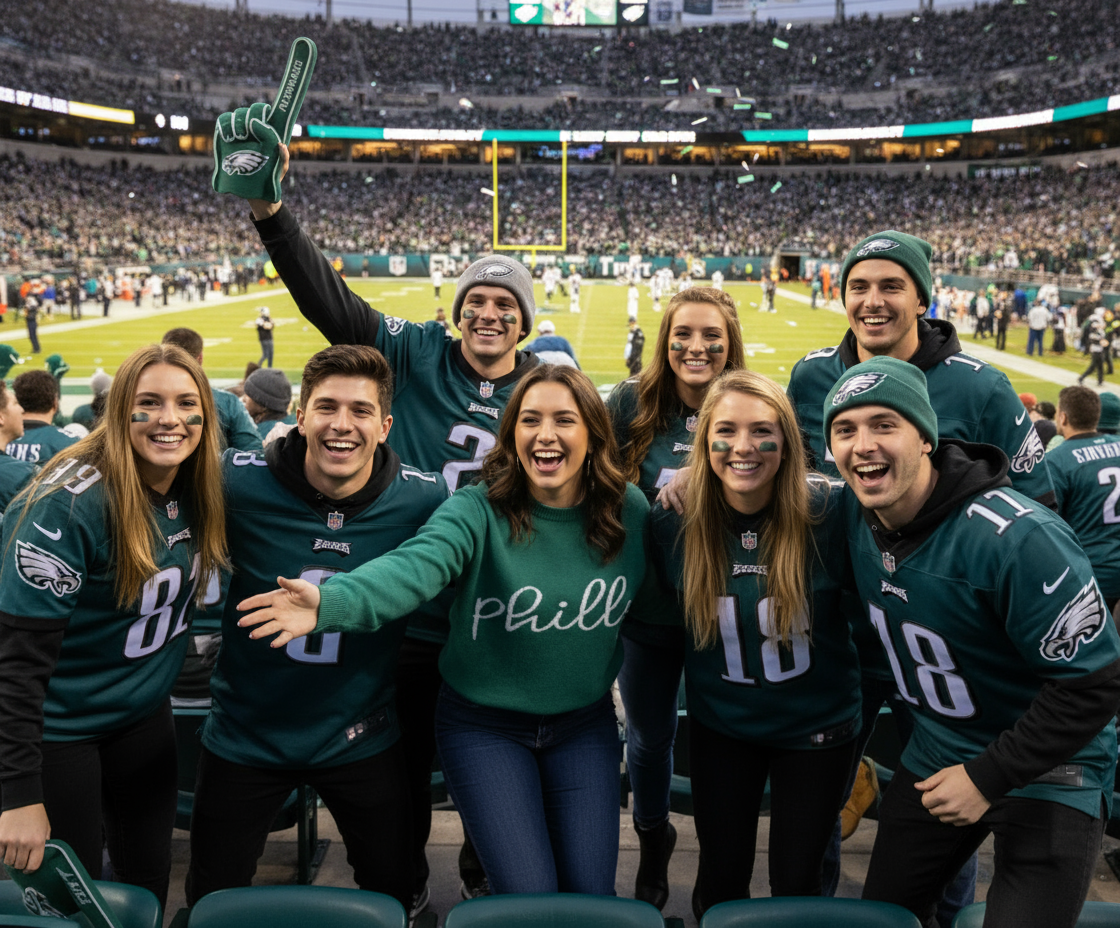 A cozy, soft knit in a rich green hue featuring “Philly” in clean white script. Its relaxed fit and classic crew neckline make it an easy, everyday layer—perfect for crisp fall days, game-day errands, or casual weekend outfits.